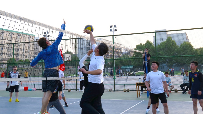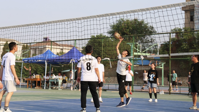 随后,院教师代表队与学生代表队进行了一场别开生面的排球友谊赛。