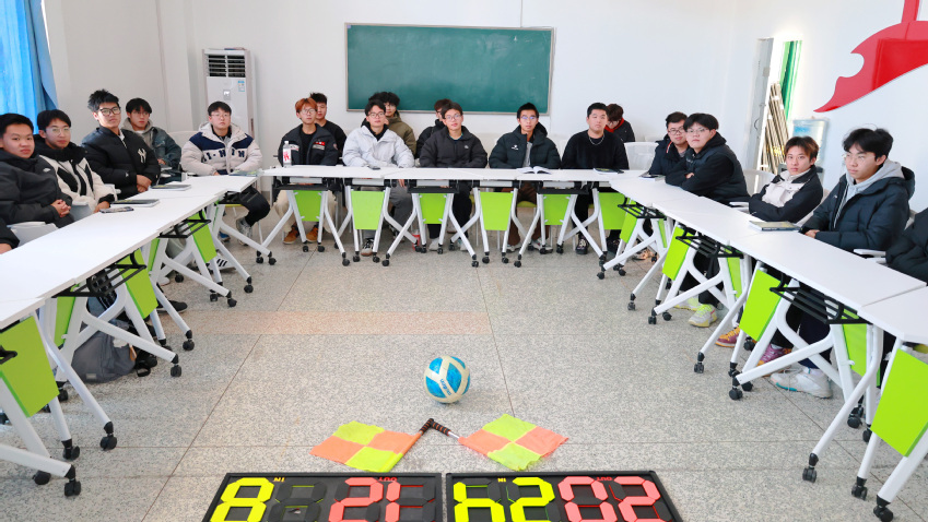 足球协会负责人介绍了球员在比赛场上的基本要求,足球裁判在比赛中的关键作用,明确说明公正、专业的裁判执法是确保足球运动顺利开展不可或缺的因素。通过赛后视频分析,帮助球员回忆赛场上的动作并加以分析,讲解当时情况下裁判员可能给出的指令,培养球员的“球商”和场上的应变能力。负责人还从裁判员的角度分析,给予普遍认同的最佳判罚。在现场模拟环节,同学们进行实际判罚操作,负责人逐一指导纠正,进一步提升球员在赛场上应对突发情况的能力。参与培训的同学全神贯注,积极记录、讨论和实践。