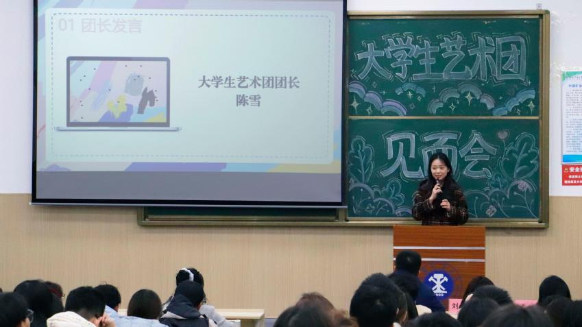 11月19日,大学生艺术团在一南101举办新成员见面会。院团委书记赵屾、大学生艺术团全体成员参加了本次见面会。