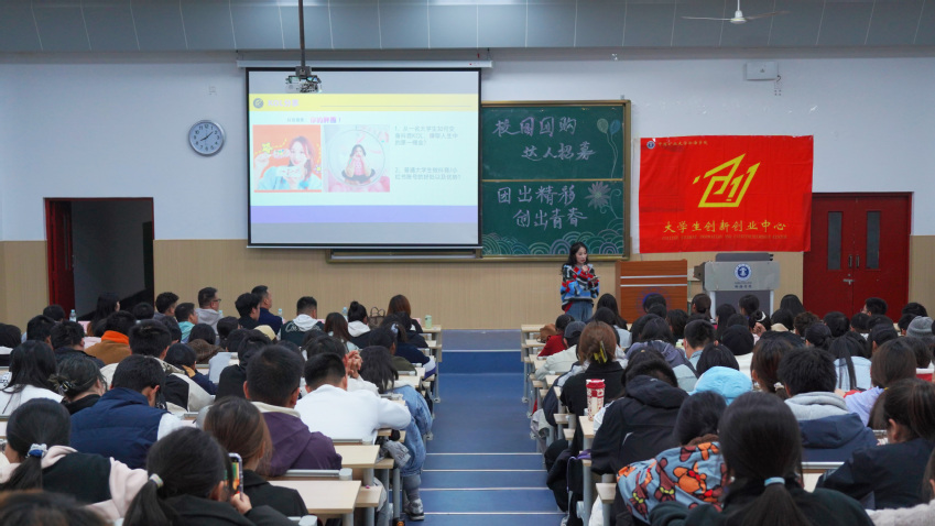11月7日晚,大学生创新创业中心在一南101举办“团”出精彩,“创”出青春——校园团购达人招募活动。学生工作处处长时鹏飞、九六班(江苏)传媒有限公司代表及“你的胖圈”团队成员参加本次活动。