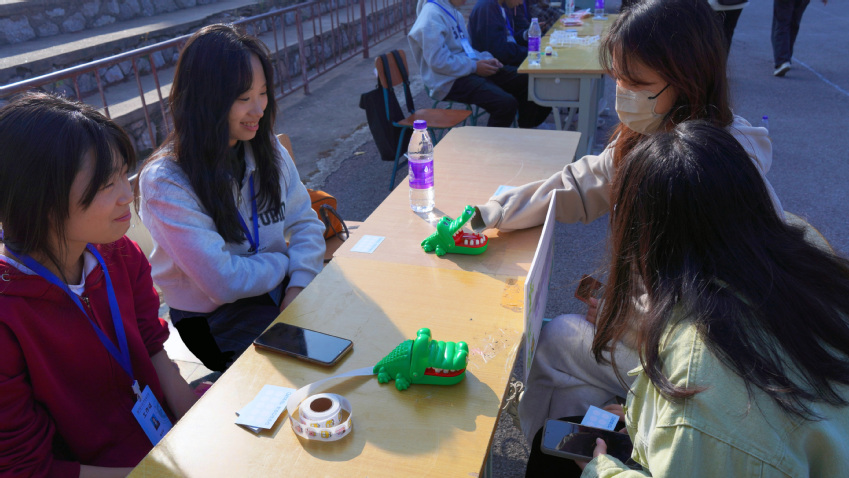 本次活动采用积分制,设有五个不同类型的创新小游戏。其中,“emoji猜成语”游戏将现代表情包元素与传统成语文化相融合,考验了参赛者的联想能力及成语储备量。“记忆大考验”则要求参赛者运用记忆技巧专注观察,记住物品位置来获得积分,在趣味中探索自身记忆的潜力。此外,骗子酒馆、乒乓闯关、咬手鳄鱼等游戏分别考验了逻辑推理能力、手眼协调能力和随机应变能力。尽管有些难度,但前来参赛的同学仍络绎不绝,努力挑战自我以获取积分赢得奖品。这些游戏让同学们跳出传统思维框架,挖掘自身创新潜力。