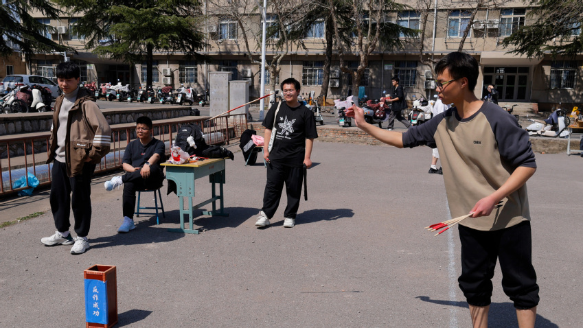 “春日投壶承礼”则还原古代射礼文化,参与者手持箭矢,目光紧紧锁定在投壶上,姿势潇洒利落,箭矢在空中划过一道优美的弧线,现场欢呼声与喝彩声不断。