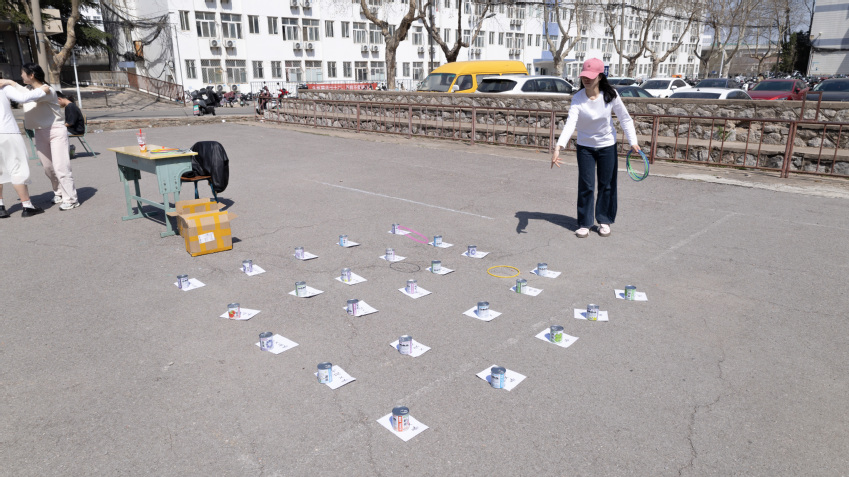 活动以春分为主题,以“古今对话”为主线,通过集章闯关形式展开,巧妙融合了传统习俗与现代校园文化。现场设置四大趣味关卡,“春分竖蛋启运”考验耐心与技巧,参与者借助食盐堆砌尝试竖立鸡蛋,寓意新年好运,同学们神情专注,期许好运随竖立的鸡蛋一同降临。