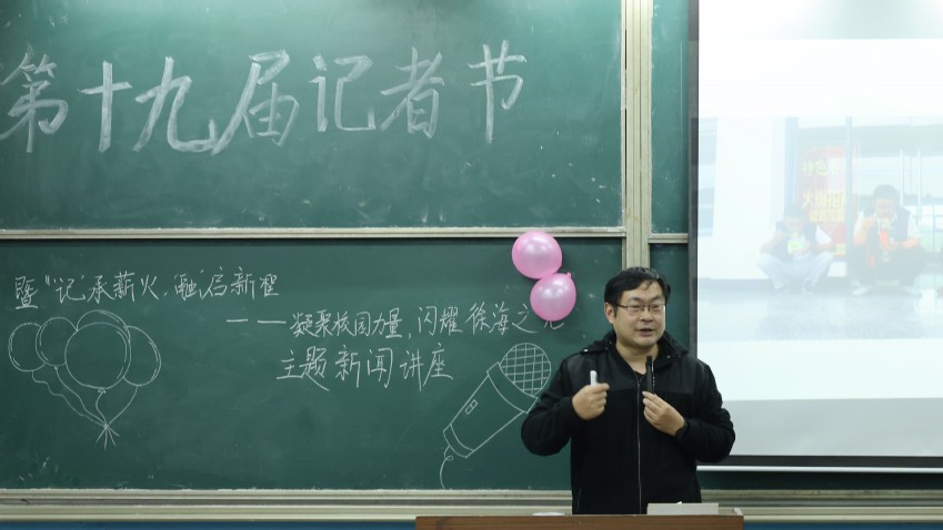 11月7日19:00,大学生融媒体中心在主西二举办“‘记’承薪火,‘融’启新程——凝聚校园力量,闪耀徐海之光”主题新闻讲座。本次讲座邀请到徐州报业传媒集团、《彭城晚报》知名记者晏飞担任主讲。院团委魏巍、信电系翟晓东,以及来自院系各级学生组织的宣传工作人员参加了本次讲座。