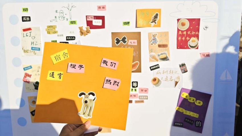 本次活动设置五个主题站点,为学生们搭建起多元互动平台。诗意停靠站内,学生们选取诗词、名言等素材拼贴共创诗作,不少人拍照分享创作成果;智慧补给站以抽签分组形式开展趣味知识竞答,学生们凭答题积分兑换小礼品;治愈研究所提供材料供学生们制作冬日水晶球,大家还将冬日趣事或设计想法写在纸上进行展示交流,部分学生互换作品作为礼物;投壶纳福苑设置传统投壶游戏区,学生们通过投掷箭矢获取纪念贴纸或福签;完成各摊位互动获得印章后,学生们可在冬日暖心角参与幸运抽奖。各站点前都聚集了众多兴致勃勃的学生,大家对这种多元互动的活动形式感到新颖好奇。