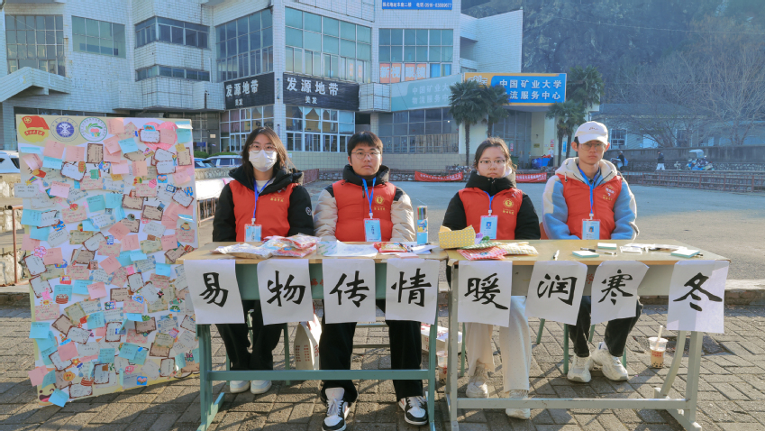 12月15日上午,院青协在菜鸟驿站前广场开展“易物传情,暖润寒冬”主题活动,为凛冬校园增添了浓浓暖意。