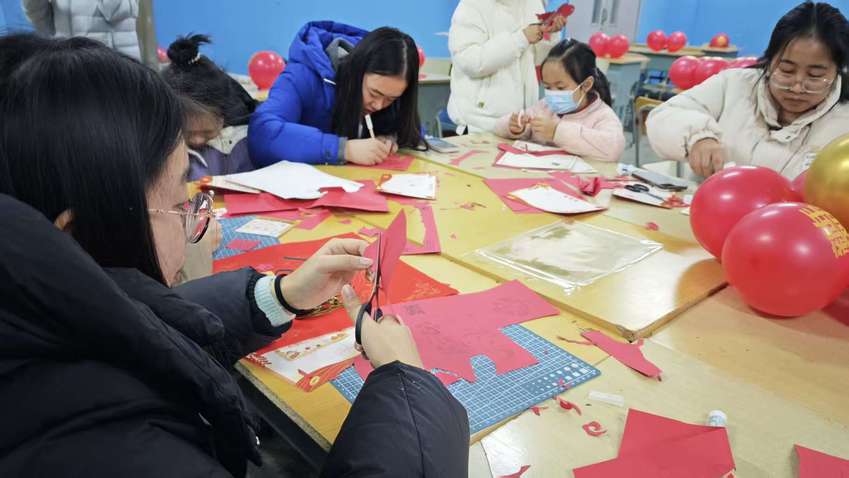 本次活动涵盖传统民俗、棋牌竞技、手工创作、益智挑战等多个类别,还特别设置花灯展览、主题摄影展及拍照打卡区,为学子们留存下温馨的新年记忆。活动当天,校园里节日氛围浓郁,各活动区域人头攒动、热闹非凡:投壶、猜灯谜等项目,让学生近距离体验传统民俗的乐趣;写福字、剪纸、制作贺卡等手工活动,吸引学子们执笔动手,翰墨飘香间年味十足;成语接龙等益智项目,考验着参与者的思维与反应速度,现场氛围紧张又活泼。集章兑奖环节全程贯穿,学子们穿梭于各教室完成游戏打卡,在收获奖品的同时,也满载着成就感与欢声笑语。
