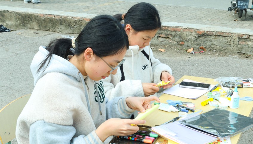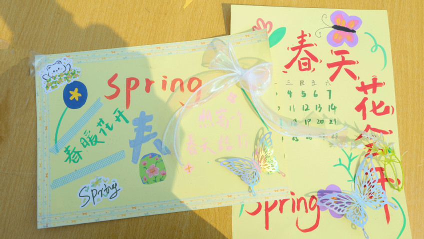 在“新页启封·新程启航”环节,同学们围绕新学期规划与青春梦想,以手作形式记录成长愿景,在创作中传递积极向上的精神风貌。随后的“初春飞花令·轻诵春之美”板块充满诗意,大家围绕春日关键词展开诗词互动,在传统文化趣味比拼中品味春日意境,现场掌声与欢笑声此起彼伏。“手作小课堂·定格春日暖”环节则让同学们亲手制作春日主题手工,用彩纸、丝带等材料将春意转化为可珍藏的纪念,在动手过程中感受季节的美好。